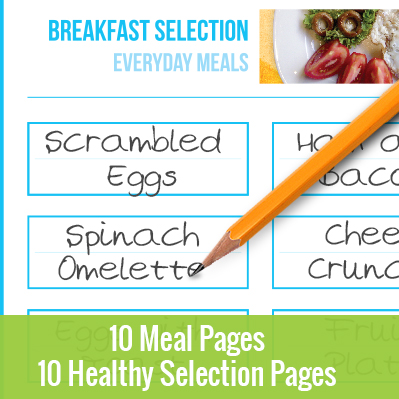 Each meal page has a healthy selections page on the opposite side. This is a great opportunity to fill in some favourites to lead a healthier lifestyle!