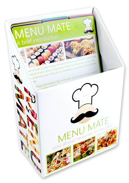 Refill Your Menu Mate: Now that you've got everything organized, put each cuisine back into the box with its appropriate menus. Menu Mate will fit on your countertop or in most cupboards for easy access.