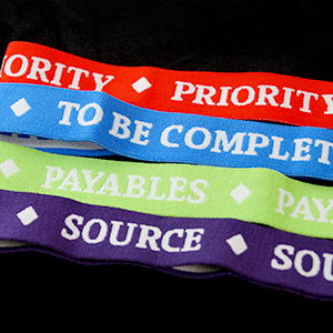 6 durable woven elastic bands to secure stacks of paper in a snap! Each band is labeled by priority and colour just like your clips for maximum order and ease:
